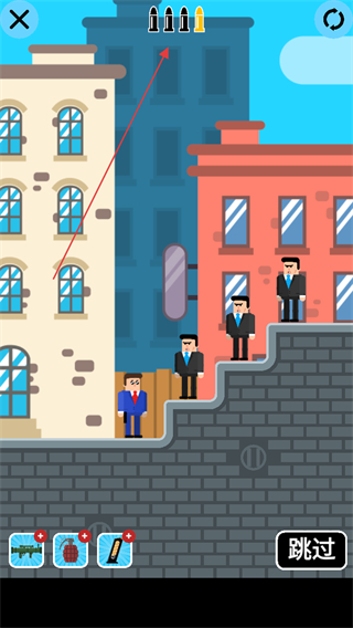 3、若一次未成功击败敌人,合理规划剩余子弹,再次调整角度射击。