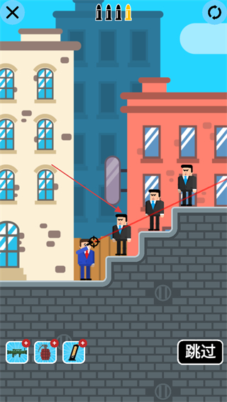 1、进入游戏,观察屏幕上方子弹数量,滑动屏幕调整射击角度,瞄准敌人。