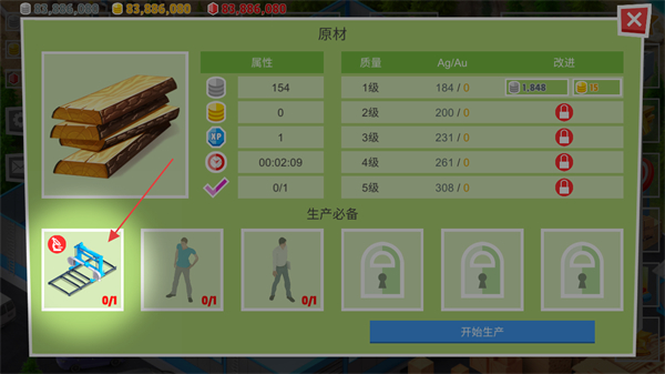 4、确认资源充足,且满足生产必备条件,如获取所需的机器设备如锯木机,点击开始生产制造产品。