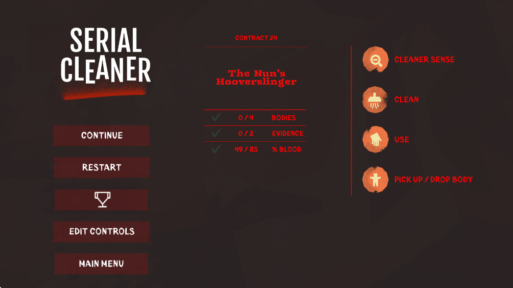 连环清洁工是一款充满幽默感和紧张感的潜行策略游戏,你将化身为一个看似普通却身负重任的犯罪现场清理专家,为黑帮清理掉那些不为人知的犯罪现场。每个关卡的目标是在不引起警察注意的情况下清理现场,而你可以利用环境障碍、警察的巡逻模式以及聪明的战术干扰来逃脱追捕。游戏中的每一个犯罪现场都需要你动脑筋设计最佳方案,而每一次成功的清理都会带来极大的成就感。