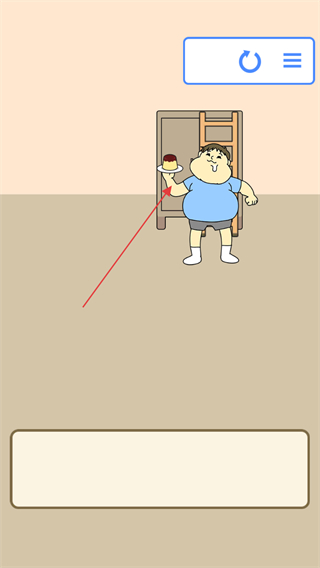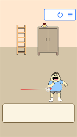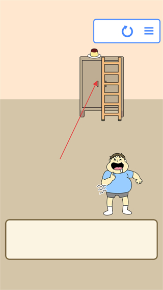 1、进入游戏关卡,观察场景中梯子、柜子及柜子上的点心位置,思考如何帮助人物拿到点心。