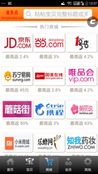 《省多点》网是一款网购省钱工具,通过省多点进入淘宝、京东等商城进入购买可以获得相应的返利,手机版延续PC端,和PC端完美结合,让网购更省钱,你可以在软件里自由的购买着自己需要的商品,让你很好的进行着购物,还能很好的省钱,非常不错的软件。