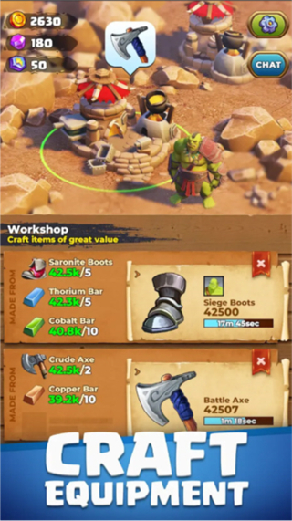 用砍伐木材与开采石材建造矿场宿舍、锻造工坊等设施,升级设施可提升采矿效率与锻造成功率,壮大兽人部落规模。