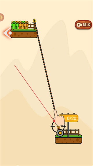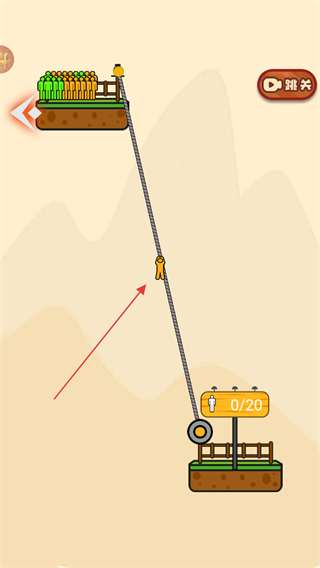 1、进入关卡,看到屏幕下方有装置,点击装置发射绳索,注意牌子上显示的目标数值,如0/20。