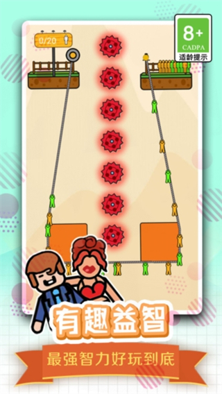 全民绳索营救是一款由手指控制的物理解谜休闲益智作品,需要通过绘制绳索解救被困在危险地带的角色,采用独特物理引擎设计,每关都要巧妙规划绳索路线,避开障碍物的同时确保救援路线安全可靠,拥有大量不同关卡,随着推进挑战难度逐渐升级,各种机关考验反应速度和策略思维。