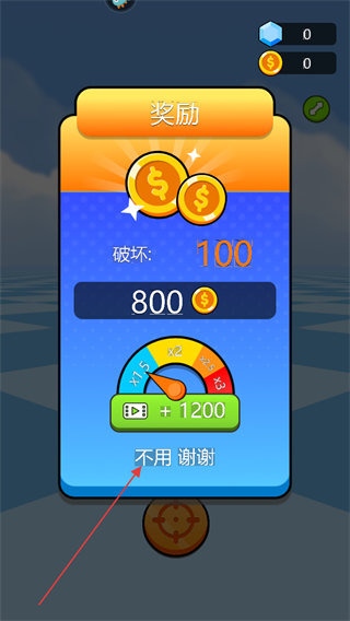4、成功击败敌人后,会弹出奖励界面,可选择获取奖励或点击不用谢谢跳过,继续游戏。