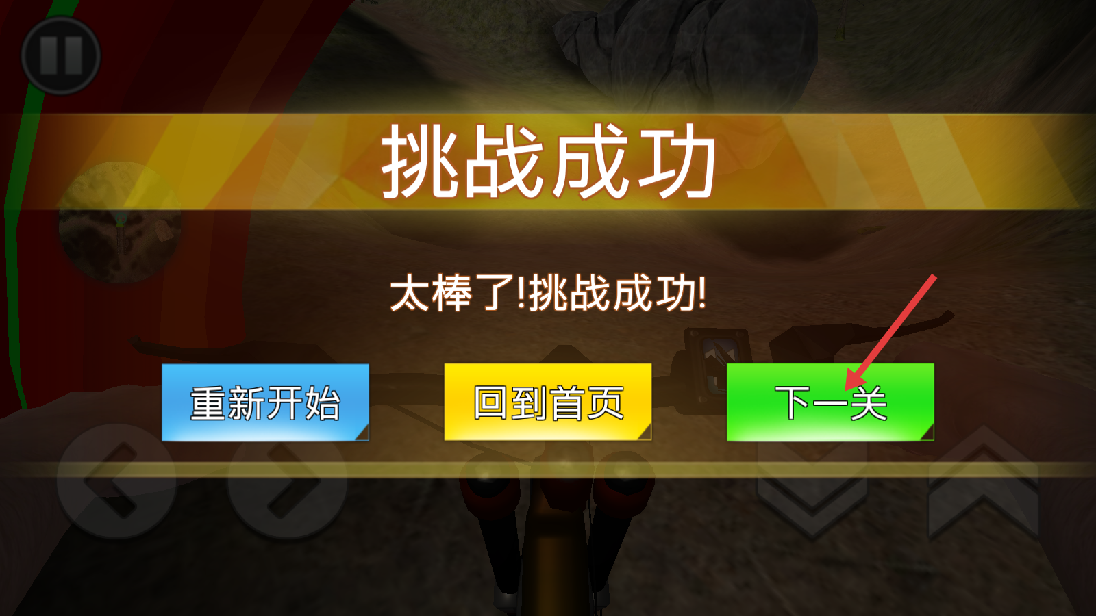 4、挑战成功后点击【下一关】按钮,继续解锁新的自行车闯关关卡,提升骑行技巧。