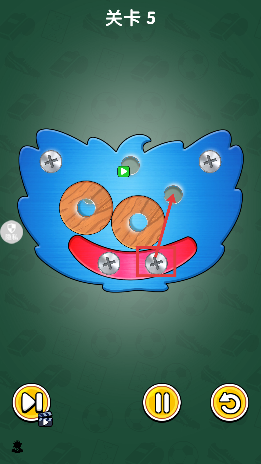 1、在【关卡5】,先将眼睛处的螺丝拧到上方对应的孔,逐步拆解图形,开启通关流程。