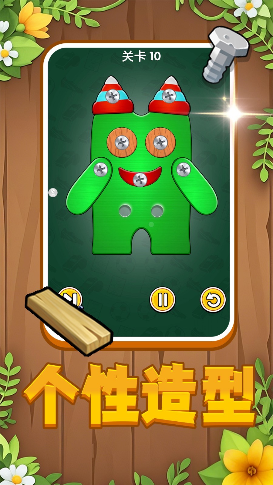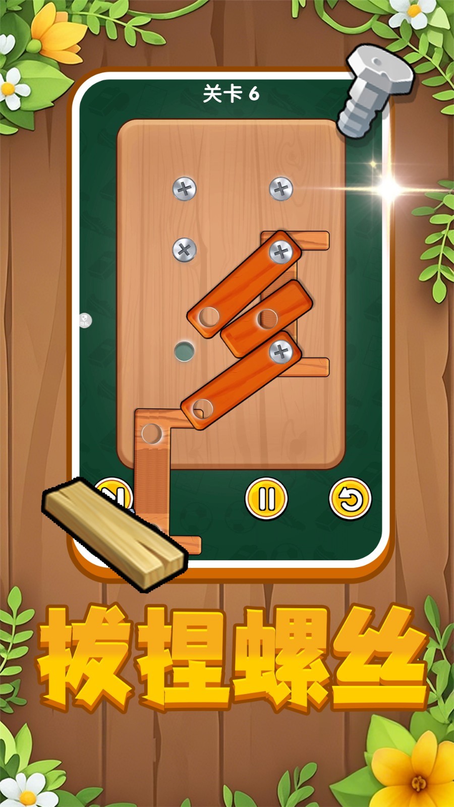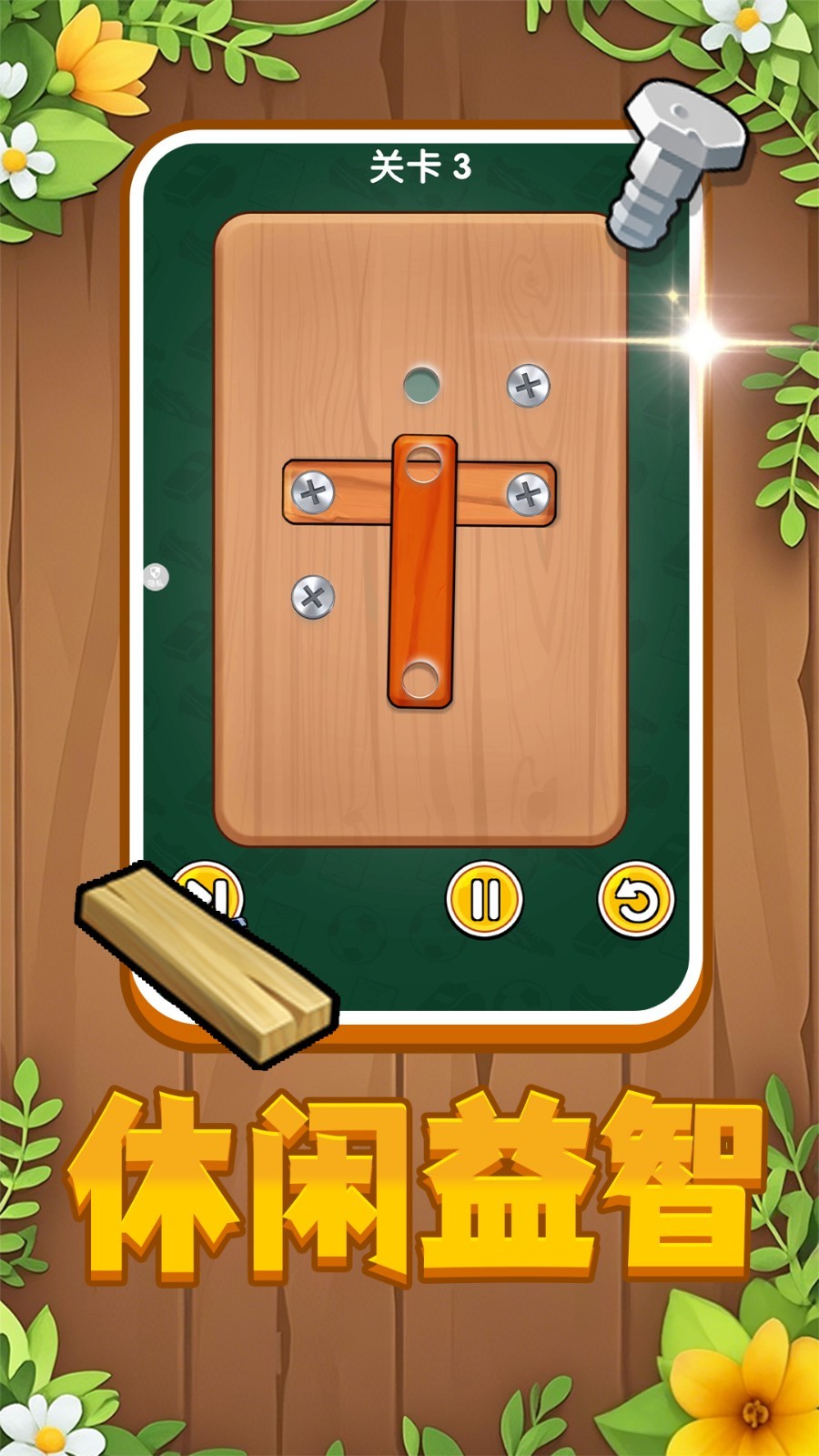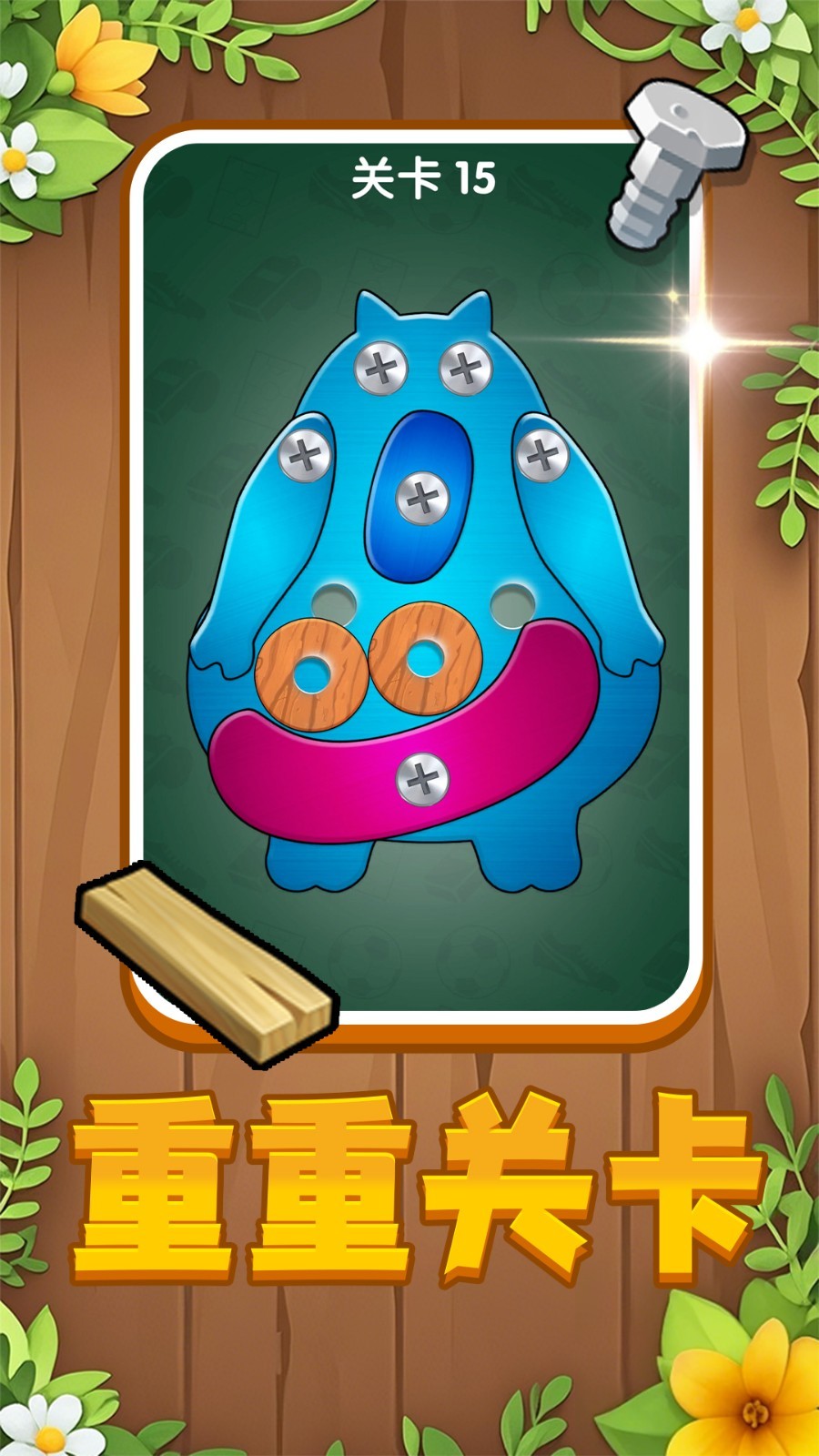 我来打螺丝是一款休闲闯关类手游,以拆除螺丝为核心玩法,提供大量关卡供用户挑战。初始关卡设计简单,帮助快速掌握基本操作,随着进程深入,难度逐渐增加,要求用户思考螺丝的先后拆除顺序,防止相互阻挡影响掉落。该手游高度还原物理交互,真实模拟螺丝与木板的连接关系,每次操作都关乎整体结构稳定。解谜过程需要逻辑推理和空间想象力,后期融入旋转螺丝、隐藏机关等动态元素,提升挑战性。通关后可获得金币奖励,解锁新内容,激励持续参与。整体体验简单上手却富含策略深度,适合休闲时间动脑娱乐。