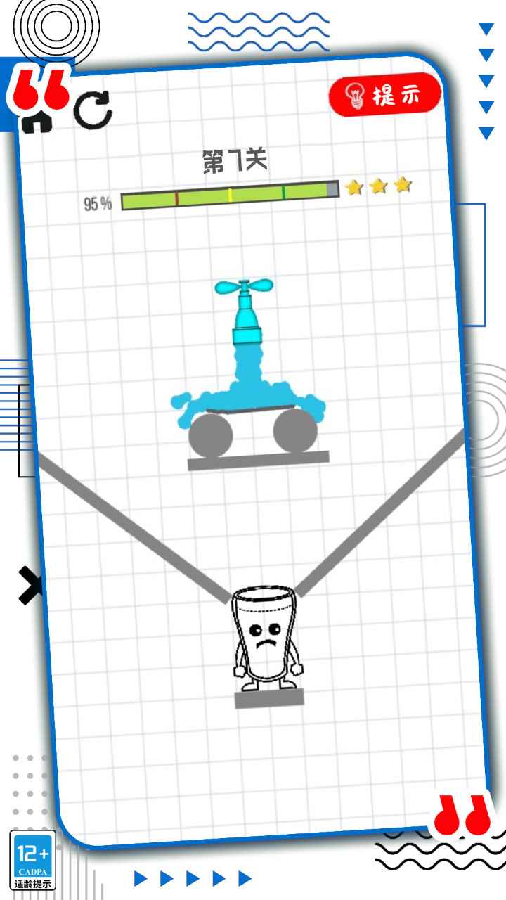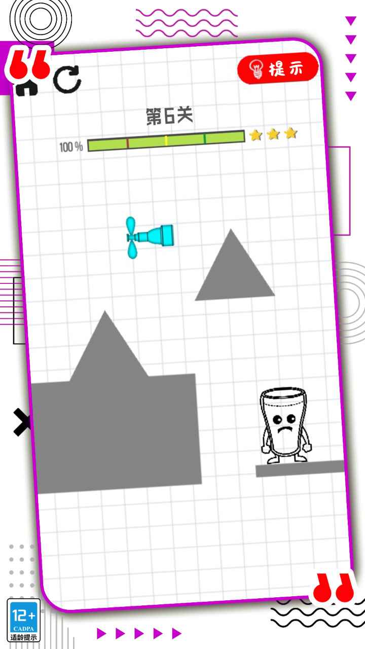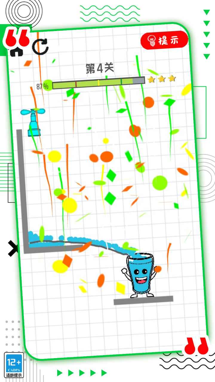 3、玩家必须用手指画出一条线,能够去使玻璃杯中充满液体。