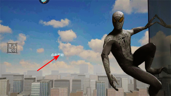 1、在游戏开始界面,点击点击开始,即可进入游戏,开启蜘蛛侠的城市冒险之旅。