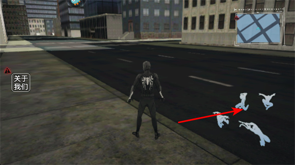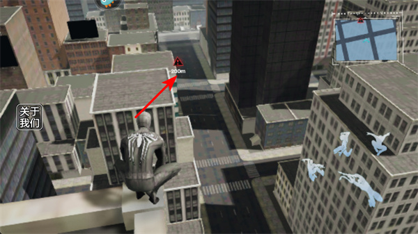 4、在地面时,点击右侧的动作按键,可让蜘蛛侠做出相应的地面动作,用于或与场景互动。