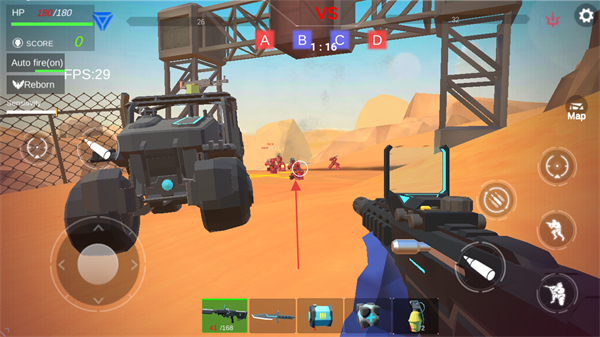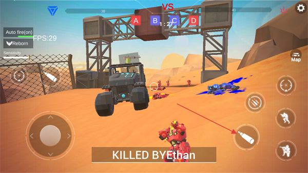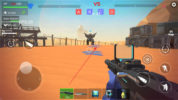 2、发现敌方机甲出现,瞄准目标,点击射击按钮对其进行攻击。