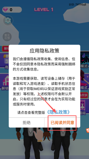 1、看到“应用隐私政策”弹窗时,点击“已阅读并同意”按钮以继续。
