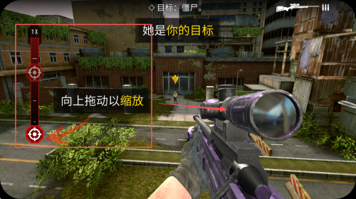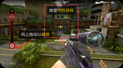 1、持步枪定目标:拿起独有的刺客步枪,根据任务提示锁定需射杀的僵尸或敌人,调整狙击镜焦距,确保瞄准目标要害。
