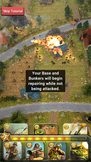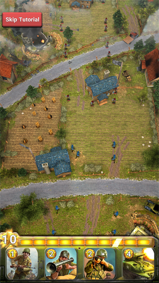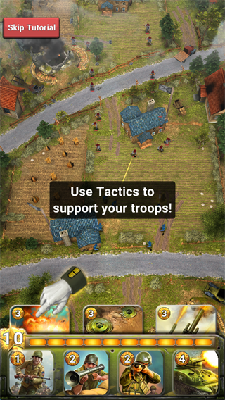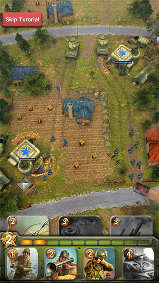 1.游戏开始可以通过点击屏幕下方的相应的“兵种卡牌”。