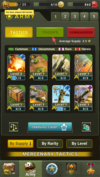 8.当然,兵种也不例外,可以直接升级,提升战力。