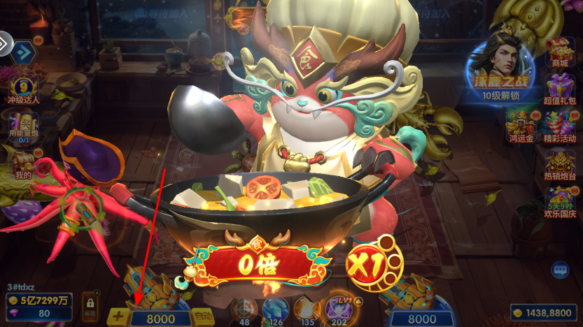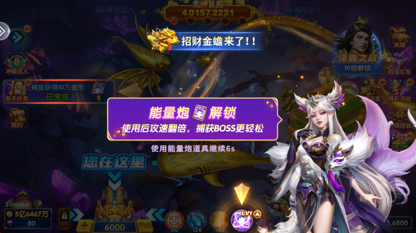 3.这样我们就进入了,可以选择喜欢的炮台开始捕鱼