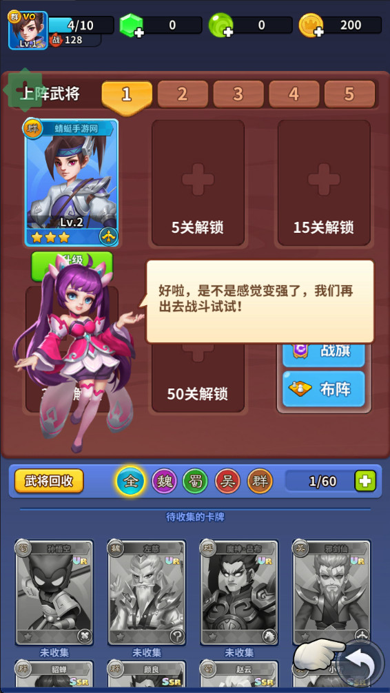 三国小队是一款以三国演义为背景的策略角色扮演游戏,玩家将组建自己的武将小队,参与战斗、征服敌人,并逐步扩展势力,每个武将拥有独特的技能和属性,玩家需要根据敌情和地形合理搭配,制定最佳战术。