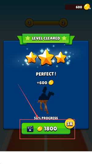 4、如何完成关卡:成功到达终点并完成关卡后,你将获得星级评价和金币奖励,点击“3X”按钮可以查看进度和奖励。