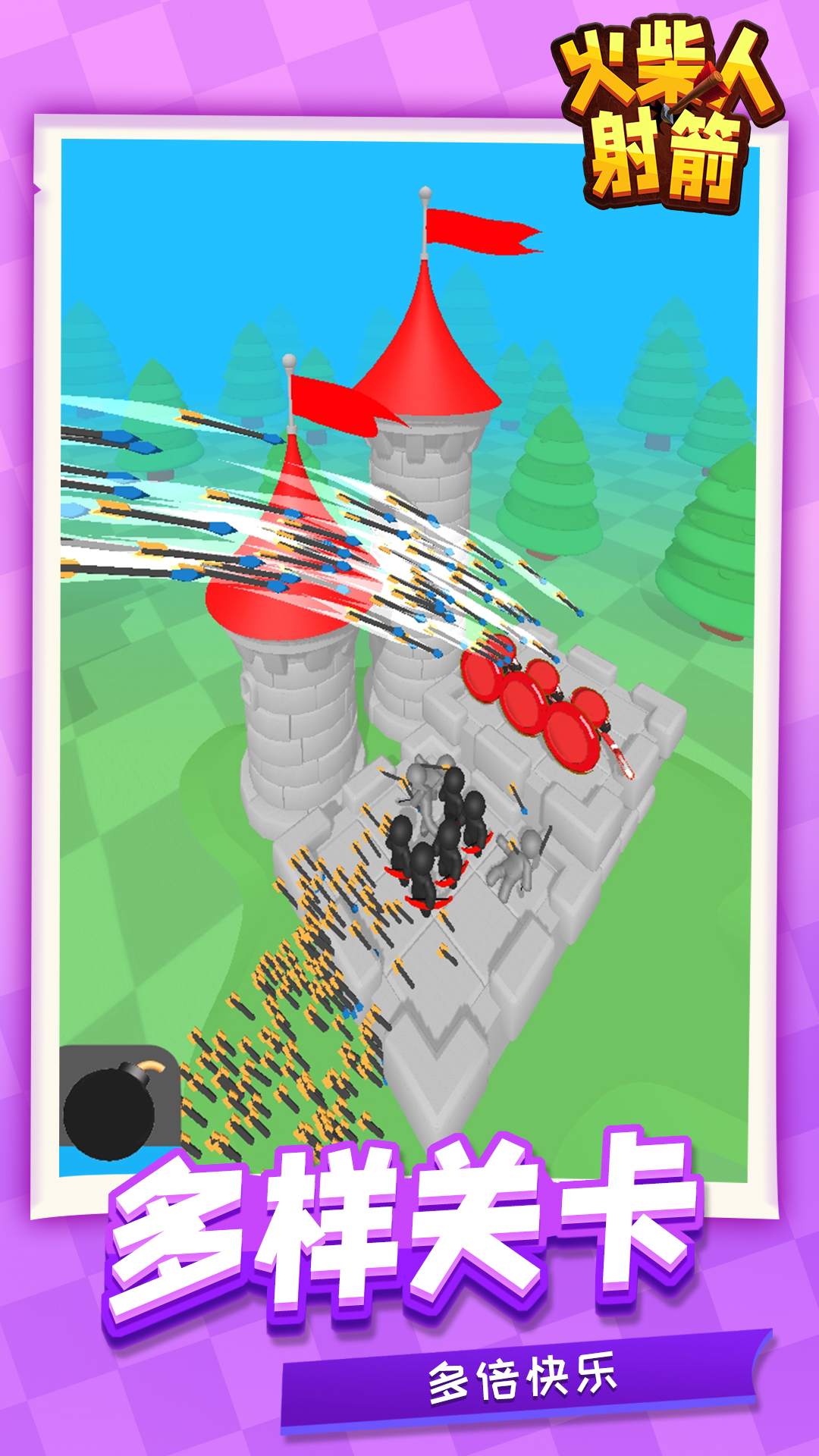 1、火柴人射手是一款塔防战争策略休闲小游戏。玩家可以操纵火柴人弓箭手,用弓箭向对面城堡的敌军射箭。