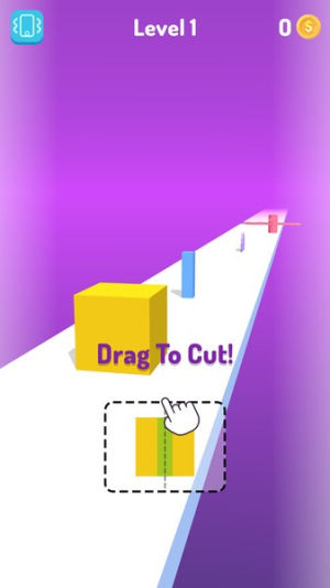 2、如何进行切割操作:在关卡界面,你会看到“Drag To Cut!”的提示,按照指示拖动刀片切割果冻。