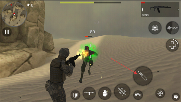 4、点击弹药按钮补充弹药,持续攻击敌人,完成关卡目标。