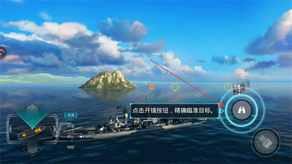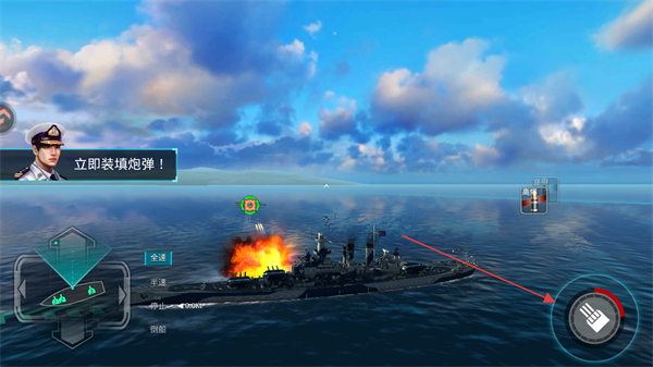 4、通过左侧操作按钮控制战舰移动,调整位置以更好地攻击敌人。
