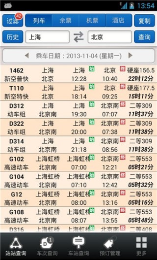 《盛名时刻表》是一款查询全国铁路时刻表的共享软件。无论你在上海、北京、广州还是杭州,只要使用盛名列车时刻表,就能轻松的为你的出行作出安排,与PC版的资源同步更新,我们先不说其他的软件功能怎么样,这个软件在用过之后还是挺不错,信息比较准确。在一个所呈现的资讯也比较全面,出门必备。
