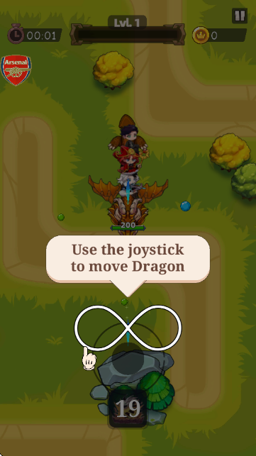 1.使用屏幕下方的摇杆(如∞形标识的操控区域)移动龙,控制角色在地图中行动。