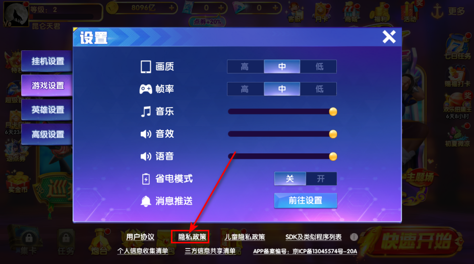 1.打开游戏,进入游戏的主界面,在主界面上方找到“个人信息”