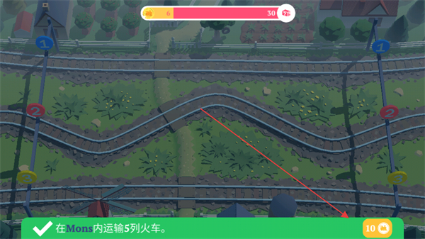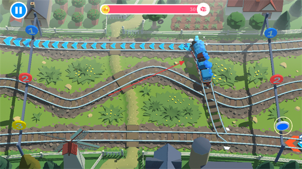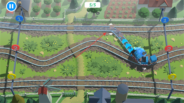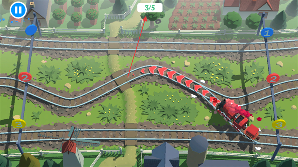 3、持续调度不同颜色列车,规划轨道避免碰撞,逐步完成关卡任务。