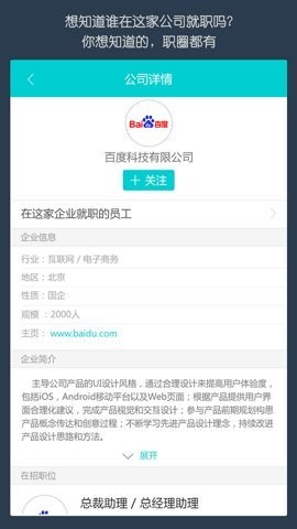 作为国内唯一一款集简历投递与社交于一体的移动端职业平台,职圈app能精准服务大学生和年轻职场人。