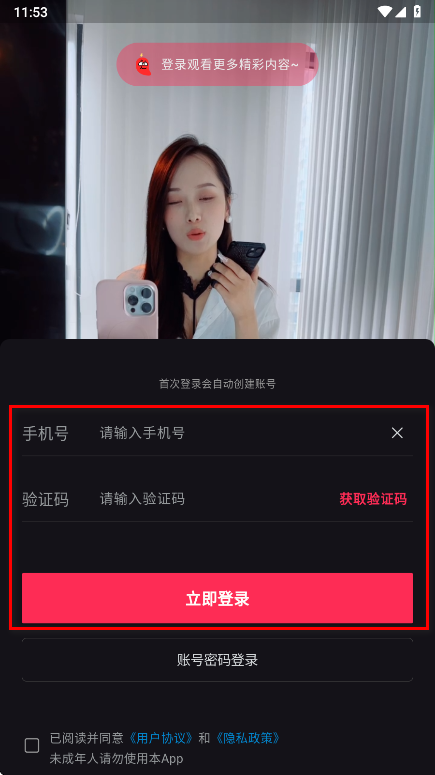2.输入手机号码和验证码,勾选已阅读并同意《用户协议》和《隐私政策》,接着点击立即登录。这里需要注意的是首次登录会自动创建账号。
