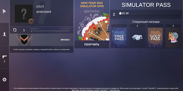 1、进入对峙2开箱模拟器之后,我们在左侧可以看到一列导航菜单栏,第一栏右侧有模拟通行证入口。