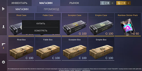 《对峙2开箱模拟器中文版》由汉化大神经过完整的汉化翻译,该软件一键完整经过汉化翻译,所有俄文改成中文,让玩家能够享受开箱的乐趣。在这里你可以尽情的模拟开箱的趣味快感。该软件高度还原了对峙2游戏的核心元素,同时操作简单,画面绚丽,让你的抽奖过程充满惊喜。