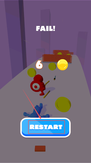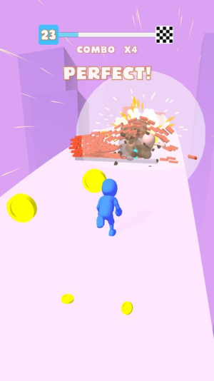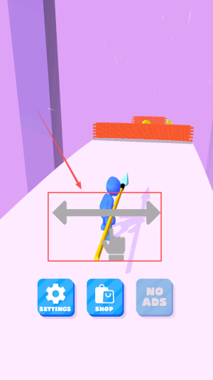 2、操控小人跑酷:控制小人在赛道前进,遇到障碍物时,及时用长矛突刺击碎,无论是普通障碍还是墙体,都能轻松突破。