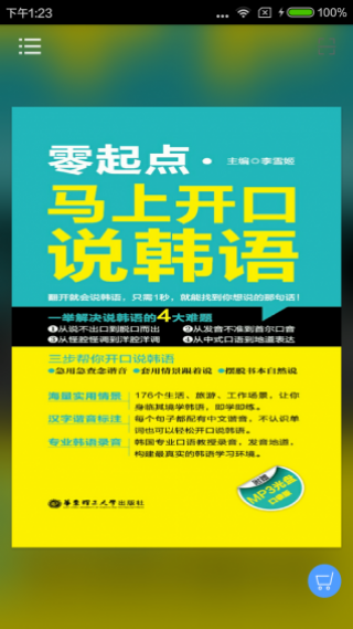 《马上开口说韩语》句子翻译通过清晰的解释和情景描述,在完整还原纸书内容基础上,优化阅读体验,新增极具实用性的有声点读功能,还原逼真的韩语语言环境,营造轻学习氛围,成为您手机里的随身韩语老师,学习造句并实际应用。
