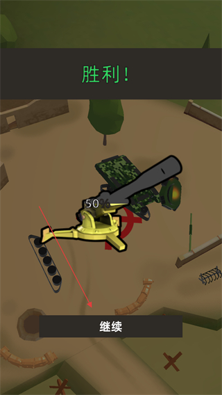 4、击败敌人后获得胜利,点击继续进入下一关,同时可解锁新的大炮装备。