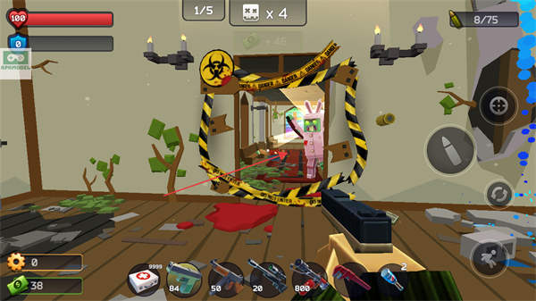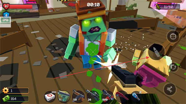 提供手枪、步枪、霰弹枪等多种武器,不同武器有专属伤害与射速,可通过购买解锁,搭配使用应对不同类型僵尸与战斗场景。