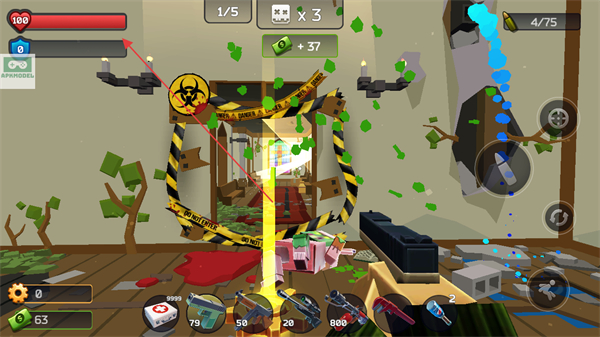 2、击杀僵尸后可获得金币奖励,积累金币用于升级或购买道具。