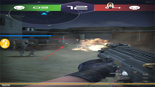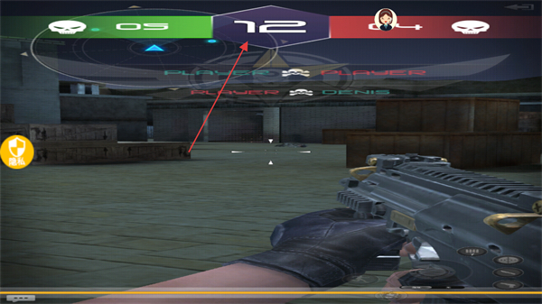 1、在对战场景中,关注上方分数如12分,寻找敌人位置,准备射击。