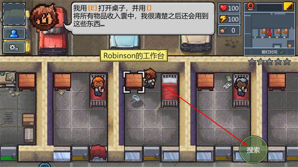 1、在牢房或其他区域,点击搜索按钮,可打开桌子等物品。