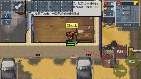 3、遭遇其他角色时,可点击攻击按钮,对目标发动攻击。