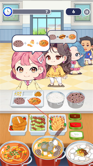 - 学校打饭时光无限金币是一款模拟食堂打饭场景的休闲作品,采用精致Q版画风打造熟悉的校园食堂环境,从窗口、餐盘到食材都充满校园气息,玩法围绕食堂打饭