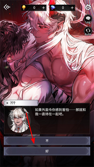2、在剧情选择界面,点击好按钮接受神秘角色邀请,这是触发主线剧情分支的关键操作,选择后将进入对应剧情线,影响后续角色互动走向。