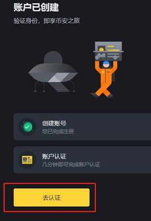 4、账号创建后,点击【去认证】