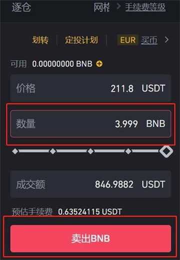 8、填写卖出数量,点击【卖出BNB】即可完成BNB币交易