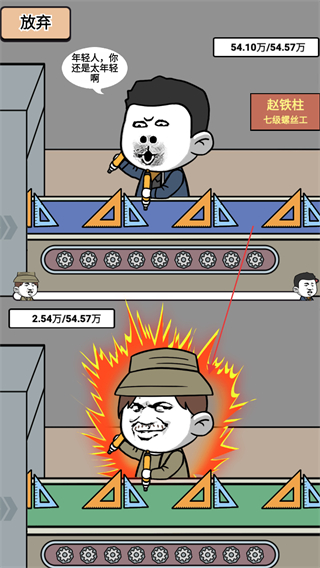 疯狂打螺丝是一款魔性风格的打工模拟作品,以工厂打螺丝为核心玩法,还原流水线上的打工场景,通过简单的点击操作完成拧螺丝动作,赚取基础工资,还能与他人展开竞争,比拼打螺丝的速度与效率,随着积累可逐步提升装备与技能,实现从普通工人到财富积累的成长,搭配趣味表情包与夸张画面,营造轻松搞笑的体验,让每一次操作都充满欢乐。