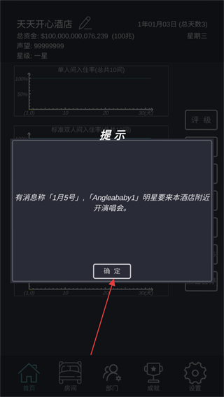 1、点击点击开始,推进游戏时间,开始酒店经营。